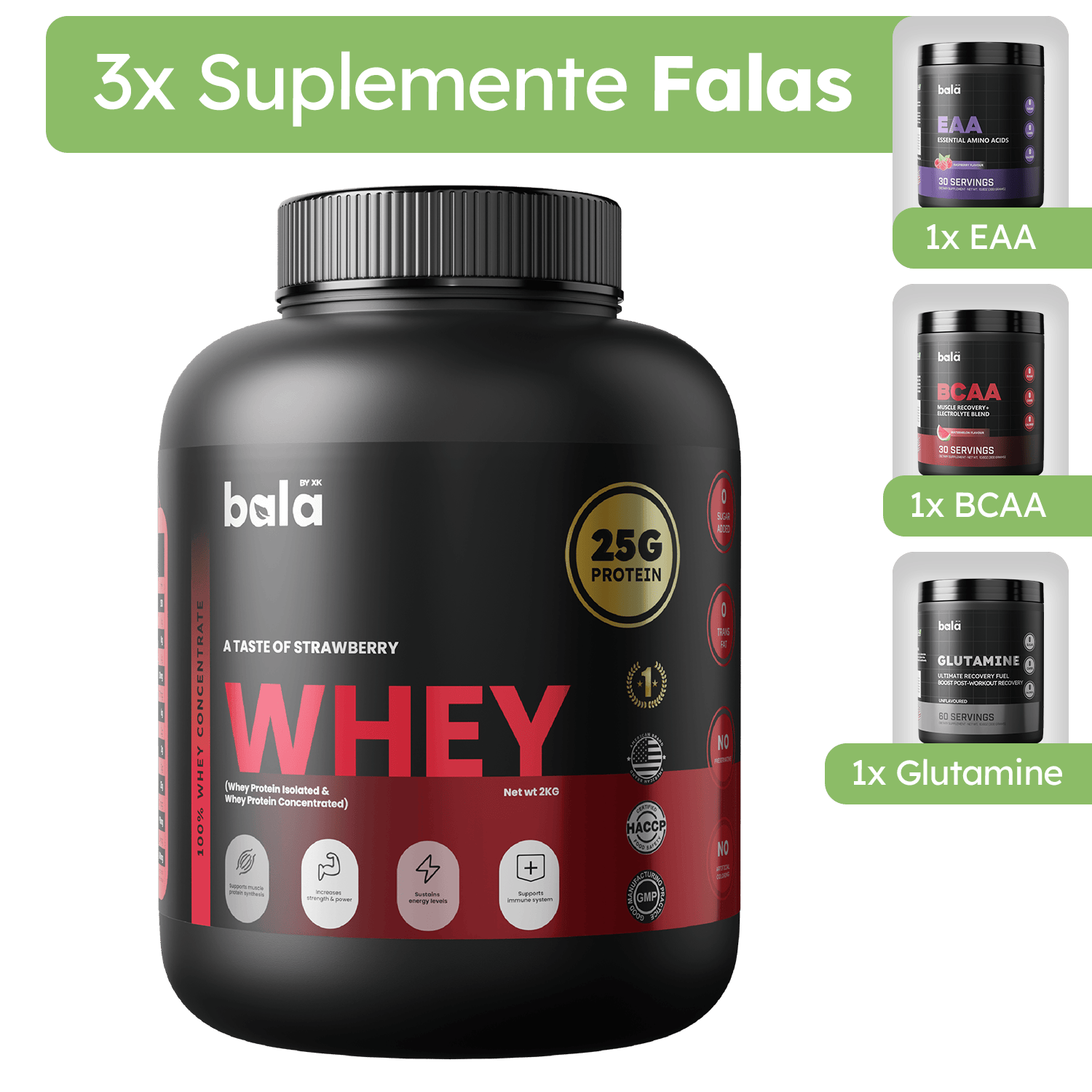 Enjoy the rich strawberry flavor while fueling your body with 25 grams of high-quality protein per scoop. Our Strawberry Whey Protein supports muscle recovery, growth, and performance. Perfect for post-workout or as a daily protein boost, it’s great for athletes, fitness enthusiasts, or anyone seeking balanced nutrition.
