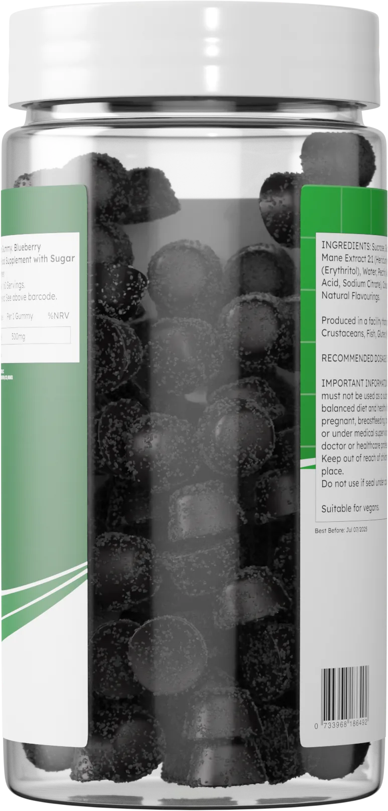 I mbushur me 500 mg ekstrakt të fuqishëm të kërpudhave Lion’s Mane, përjetoni qartësi më të lartë mendore dhe fokus me gummy-t tona të shijshme me aromë boronicë. Lion’s Mane shkon përtej rritjes së fuqisë së trurit; vetitë e saj adaptogjene forcojnë mekanizmat mbrojtëse natyrale të trupit tuaj dhe elasticitetin tuaj ndaj stresorëve të përditshëm, me përfitime shtesë që lidhen me nivelet e sheqerit në gjak, si dhe efektet anti-inflamatore dhe probiotike.