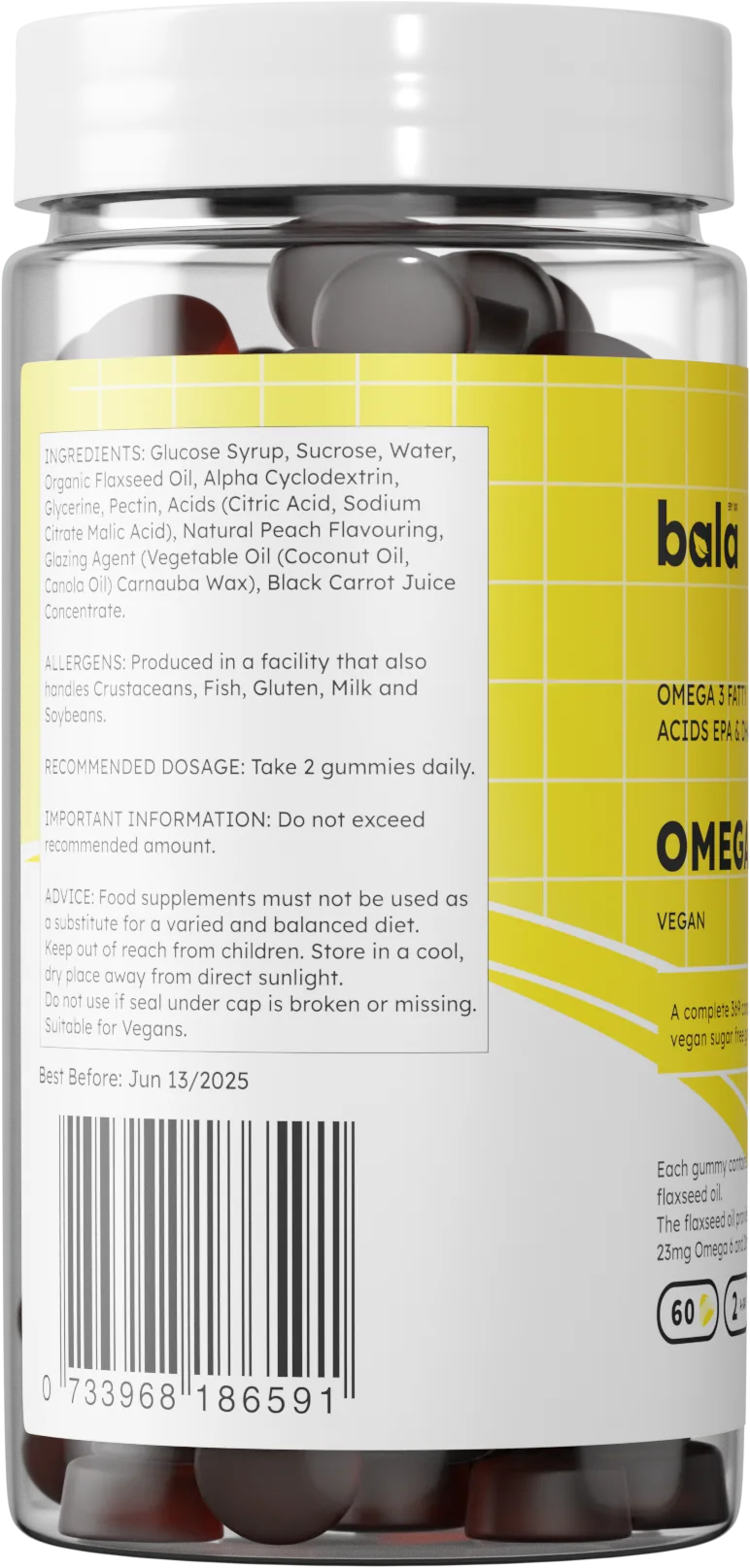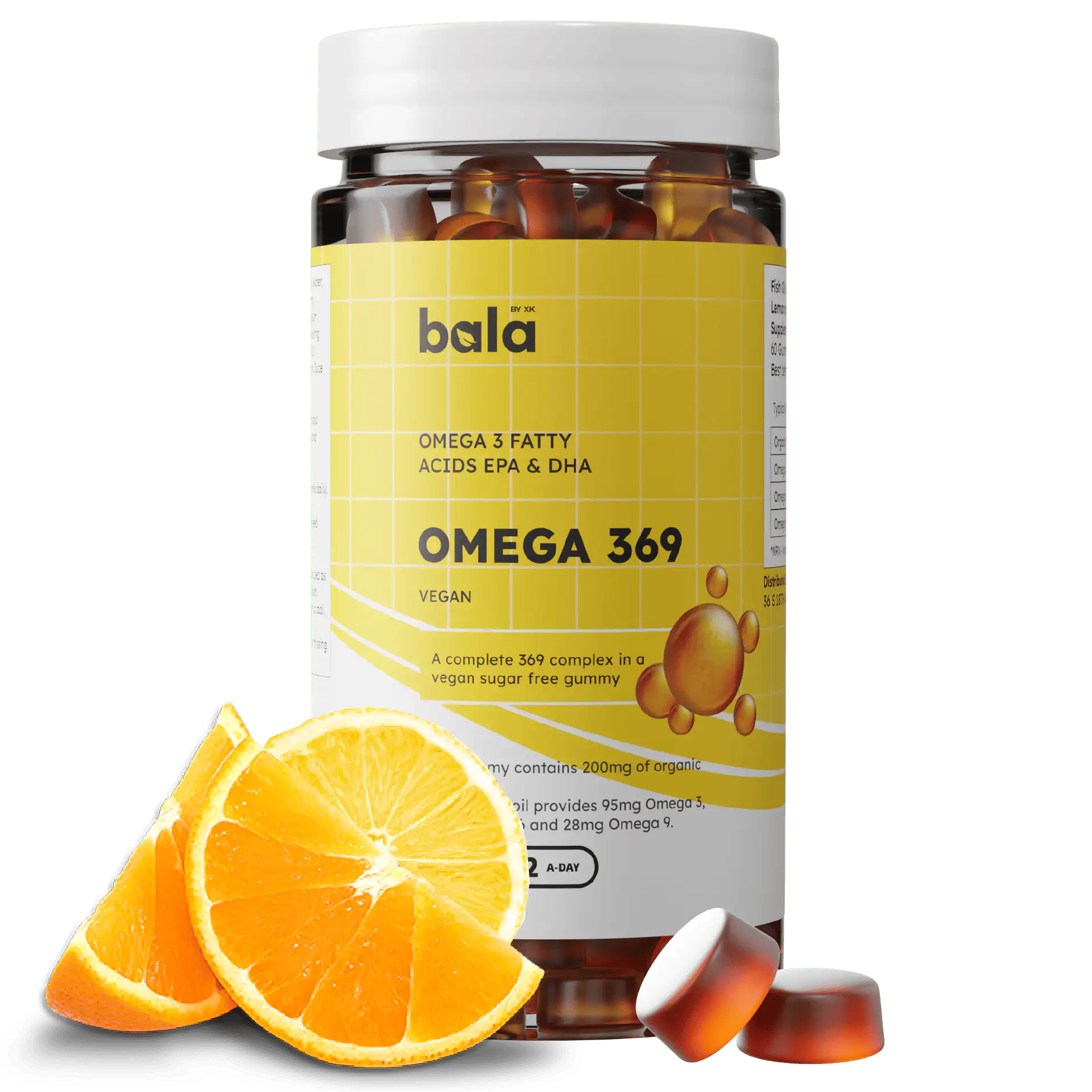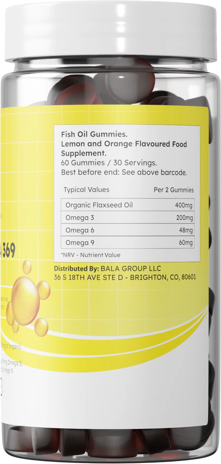 Ju prezantojmë Omega 369 Gummies, mënyra e shijshme për të rritur marrjen e acideve yndyrore esenciale Omega 369. Të krijuara me një përzierje të shijshme të shijeve të limonit dhe portokallit, këto gummy janë një ëmbëlsirë e shijshme e mbushur me të mirat e EPA dhe DHA, thelbësore për shëndetin dhe mirëqenien e përgjithshme. Çdo gummy përmban 200 mg vaj organik të farave të lirit, duke siguruar 95 mg Omega 3, 23 mg Omega 6 dhe 28 mg Omega 9, me burim nga përbërës natyralë, me bazë bimore. Të formuluara duke pasur parasysh veganët, këto gummy janë pa përbërës shtazorë dhe sheqer.